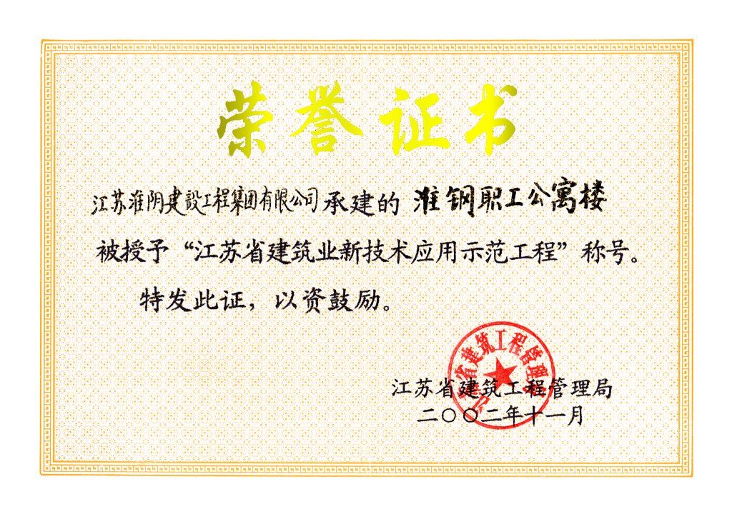 2002年度省建筑业新技术应用示范工程淮钢职工公寓楼