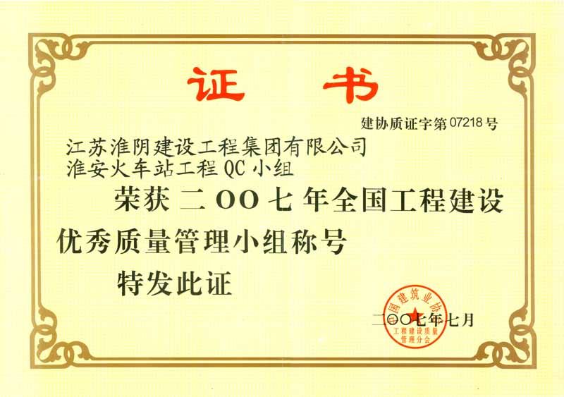 2007年省工程建设优秀质量管理小组活动成果优秀奖-SJ-20