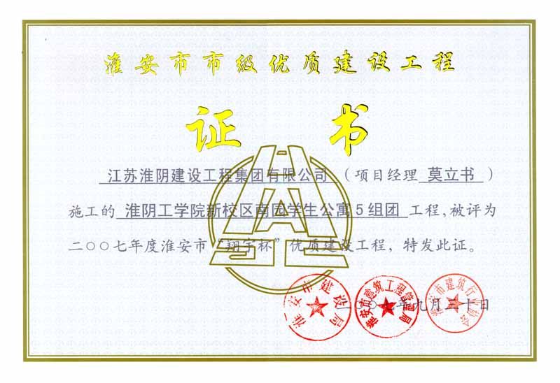 2007年市翔宇杯淮阴工学院新校区南园学生公寓5组团-莫立书