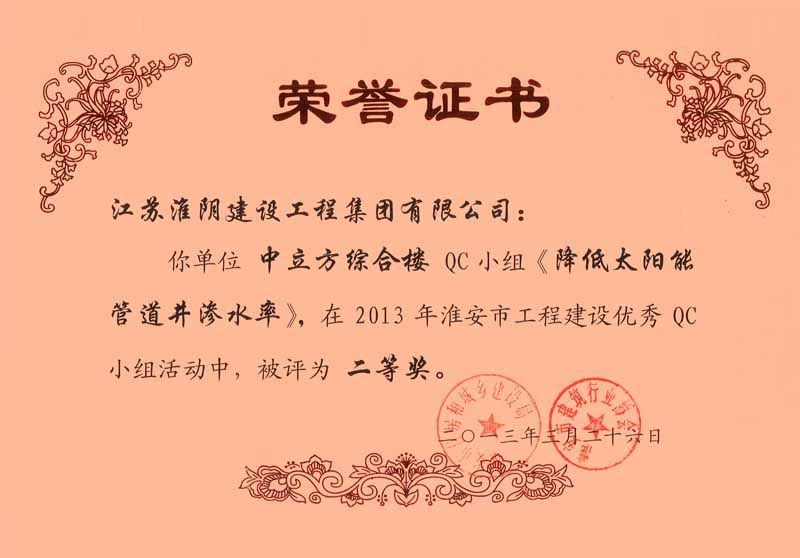 2013年市工程建设优秀QC二等奖 中立方综合楼-降低太阳能管道井渗水率(卞鸿志)