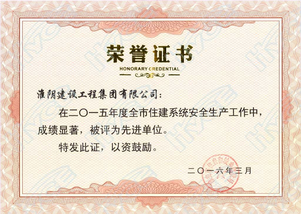 2015年度淮安市住建系统安全生产先进单位