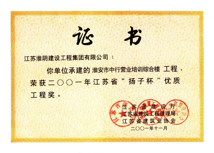 2001年度省扬子杯中行营业培训楼