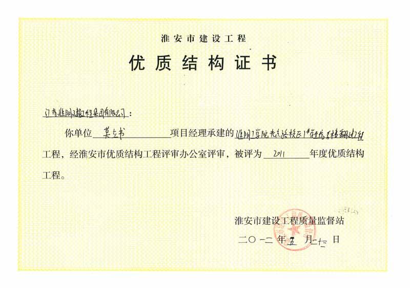 2012年市优质结构淮阴工学院北京路校区1#学生宿舍楼翻建
