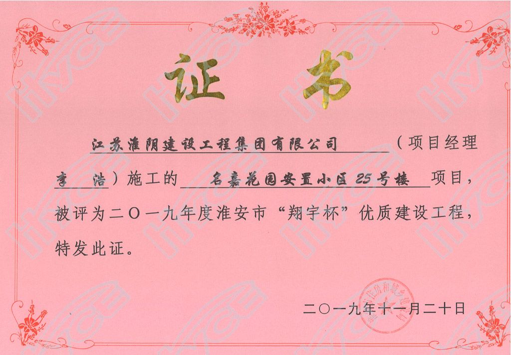 淮安市“翔宇杯”优质建设工程-名嘉花园安置小区25号楼