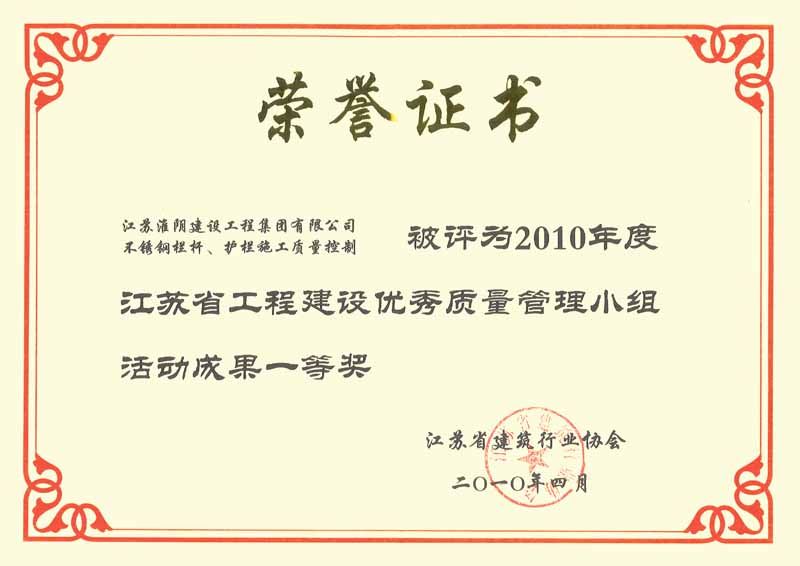 2010年省优质一等奖(不锈钢栏杆、护栏施工质量控制)